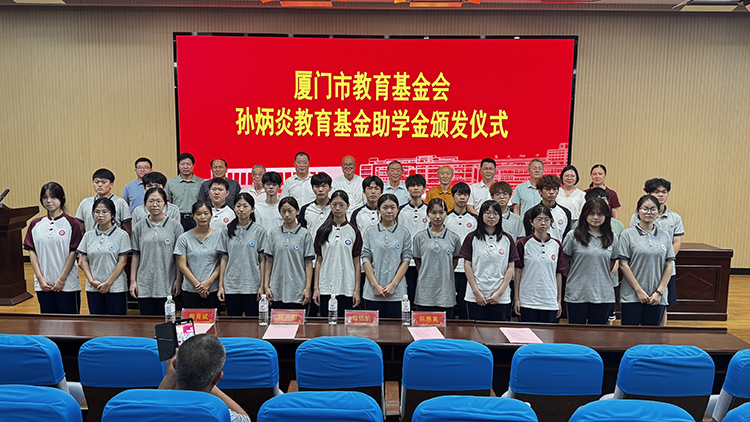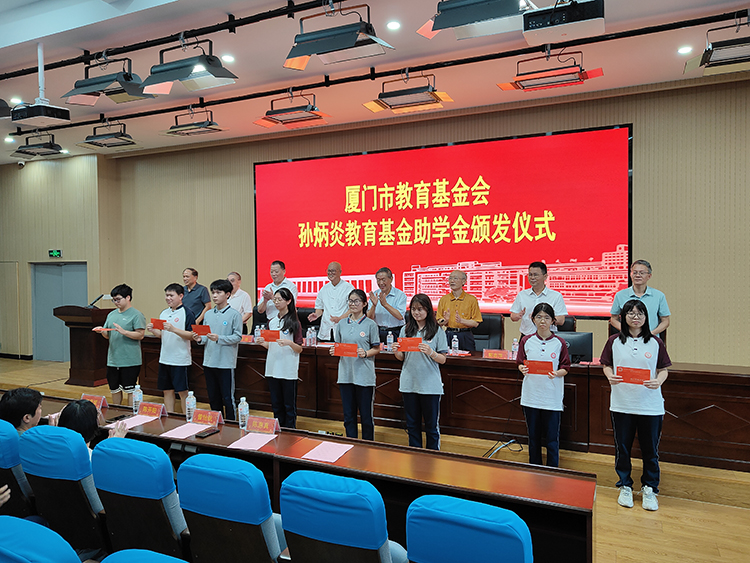 廈門(mén)市教育基金會(huì )法人潘世建講話(huà),他深深感恩陳嘉庚及孫炳炎先生的愛(ài)國教育情操,寄語(yǔ)受助學(xué)生“夢(mèng)在前面,路在腳下,鍥爾不舍,馳而不息”,希望大家能朝前看,努力成為社會(huì )的棟梁。